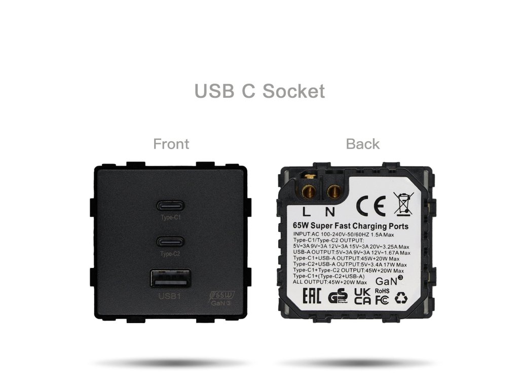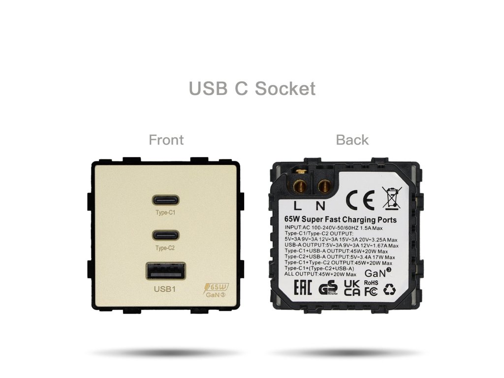 Zásuvky jsou dostupné ve dvojité, trojité a čtyřnásobné variantě s porty USB-C.