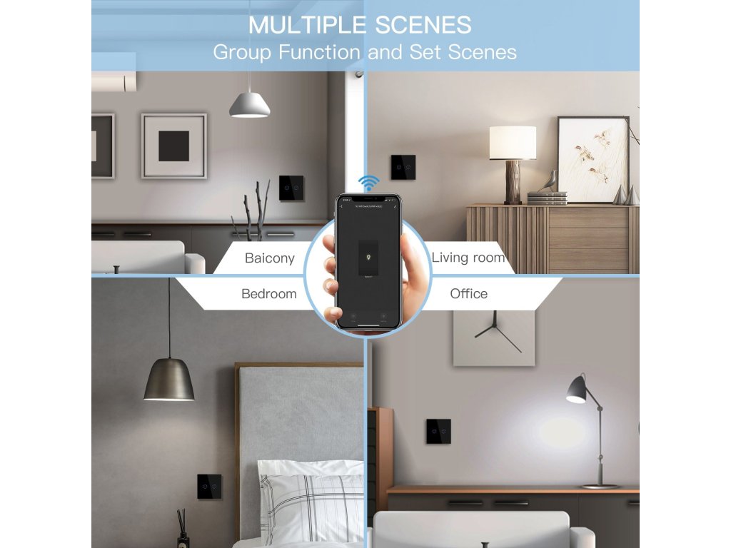 Více způsobové ovládání, wifi spínače mají 1/2/3/4 cesty a mohou ovládat jedno světlo ze čtyř různých míst (max. 4).