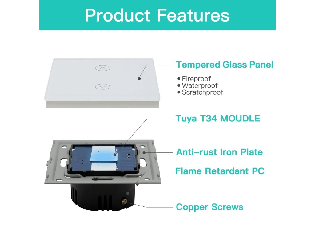 1. Wifi domácí spínač je ohnivzdorný a voděodolný. Ochrana proti úrazu elektrickým proudem pro vaši rodinu.
