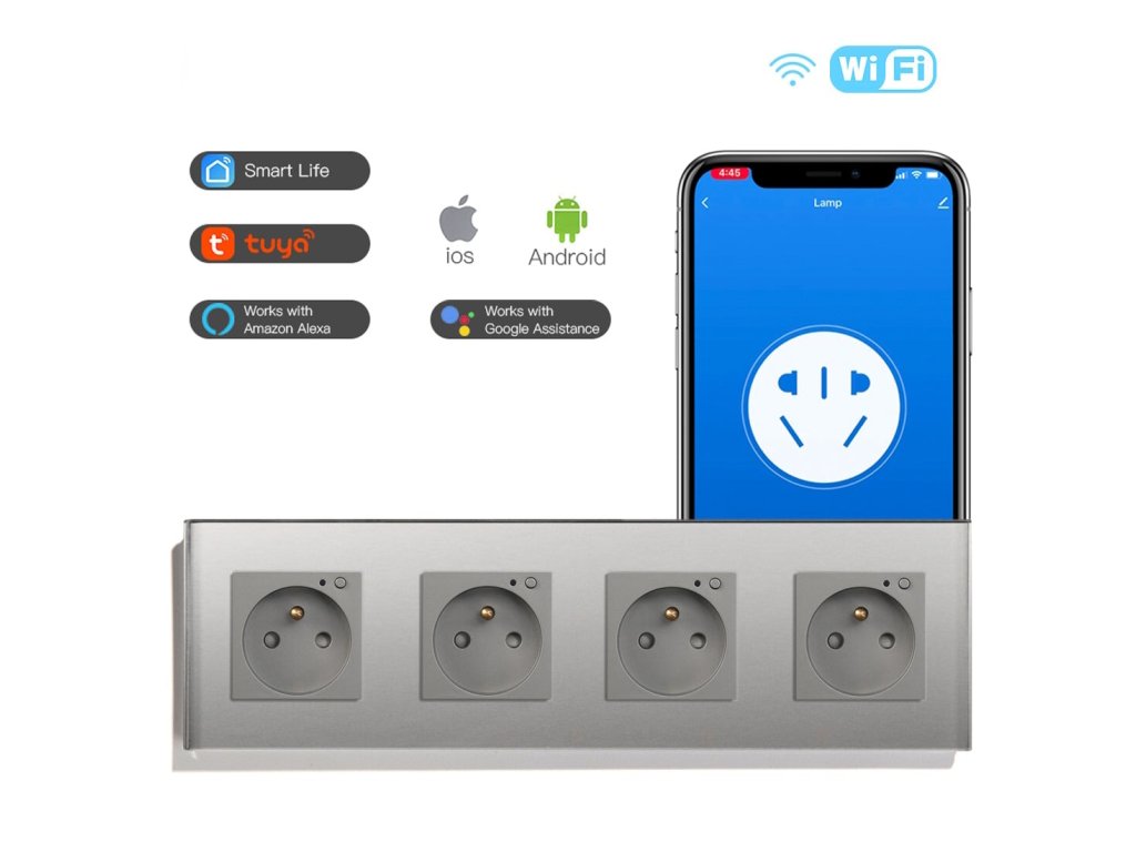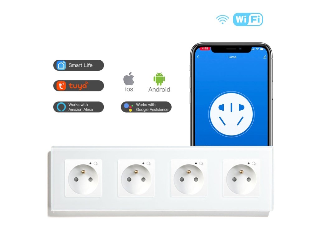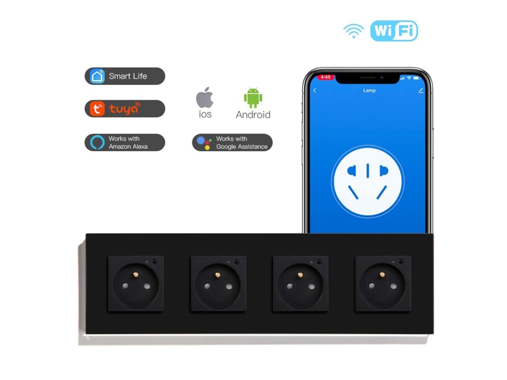 Skleněný panel Wall Smart Socket využívající protokol Tuya pro pohodlné zapínání a vypínání všech vašich domácích spotřebičů.