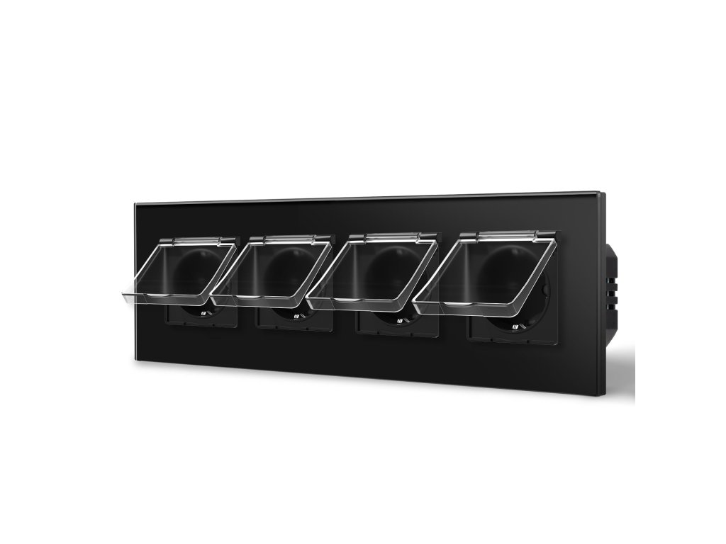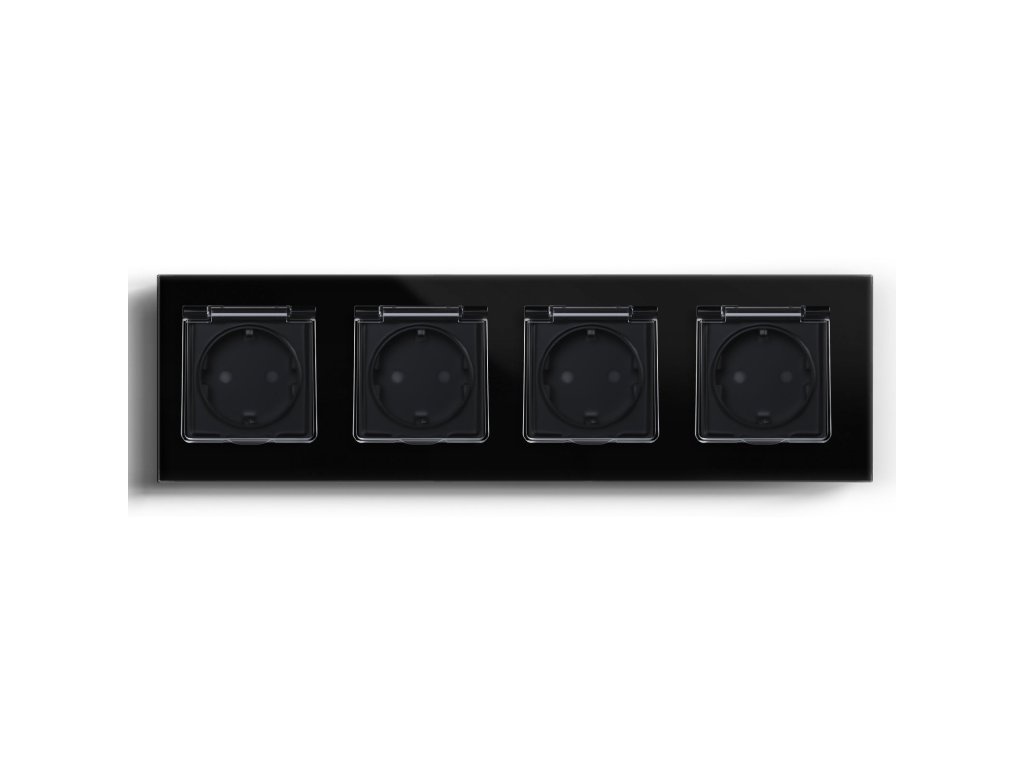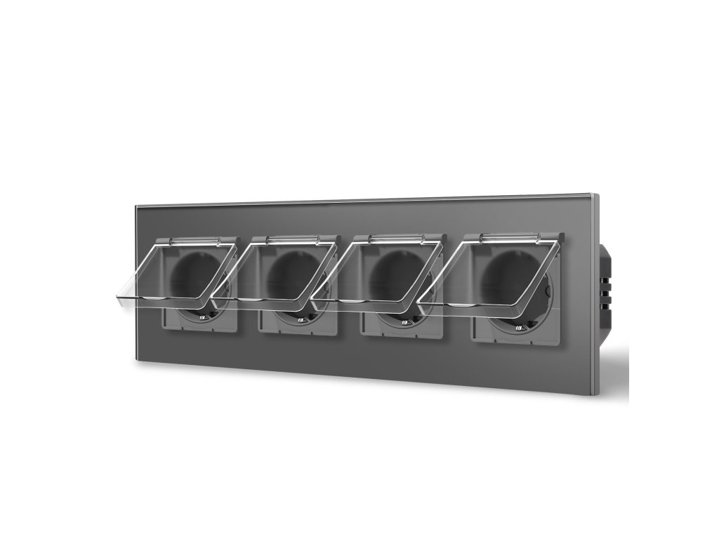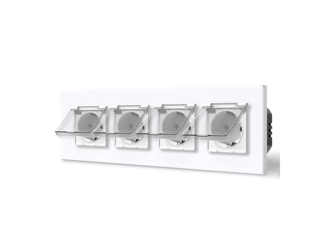 Zásuvky jsou k dispozici ve dvojnásobném, trojnásobném a čtyřnásobném provedení s plastovým průhledným krytem.