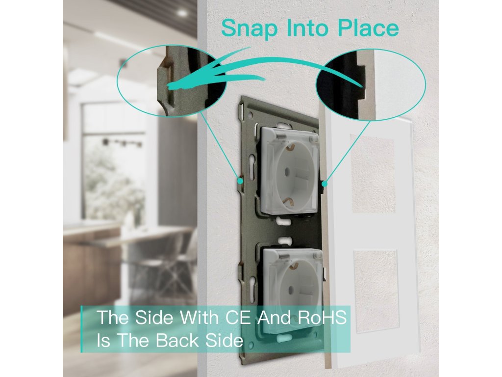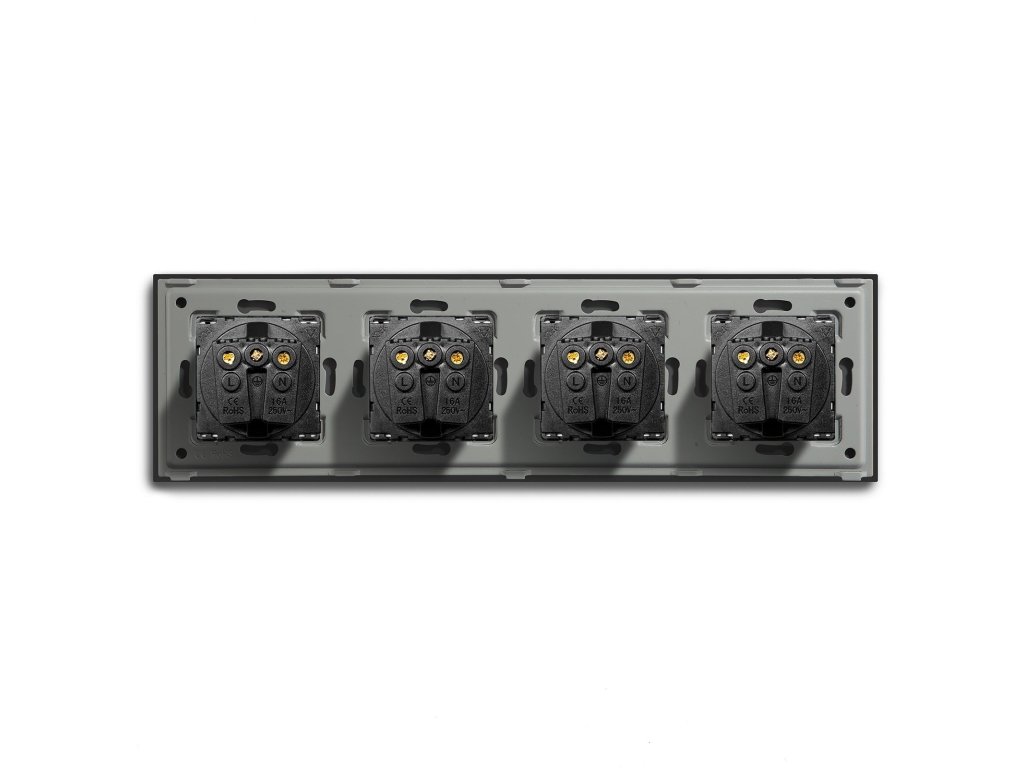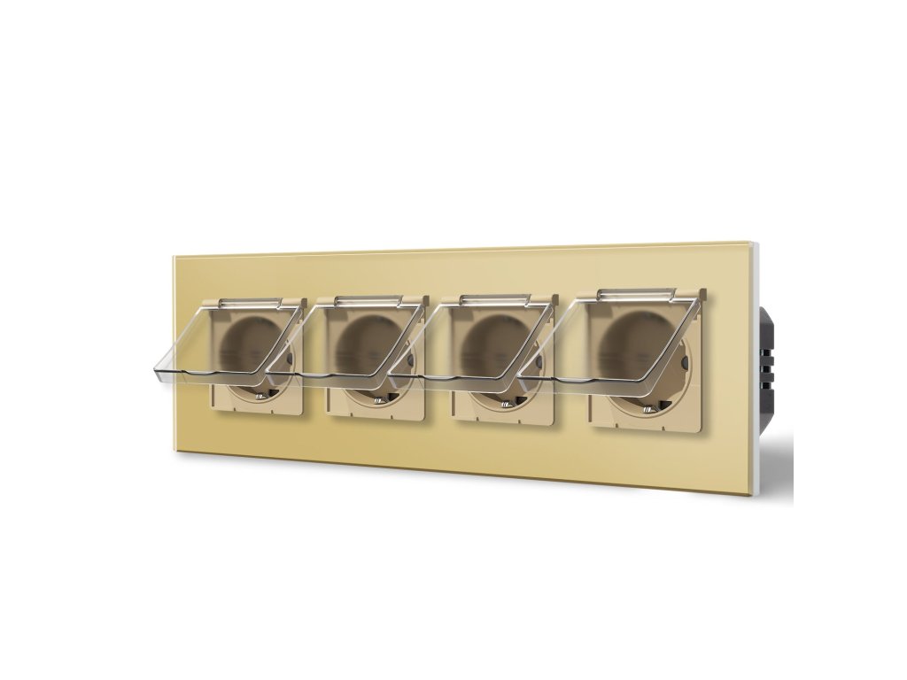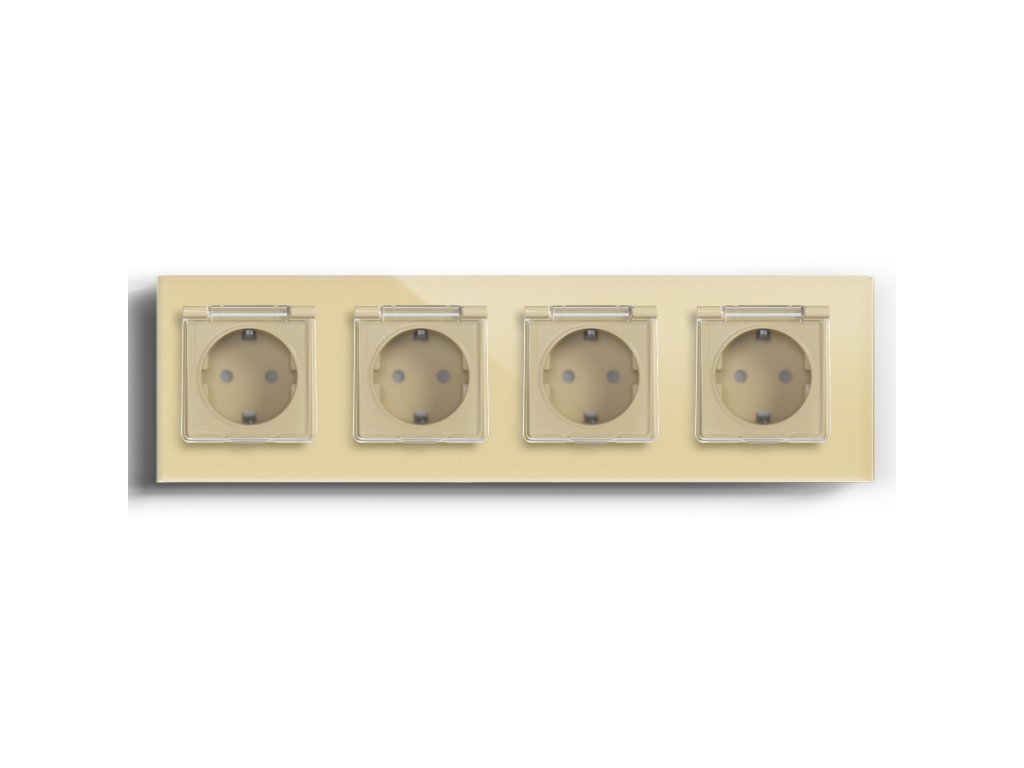 Zásuvky jsou k dispozici ve dvojnásobném, trojnásobném a čtyřnásobném provedení s plastovým průhledným krytem.