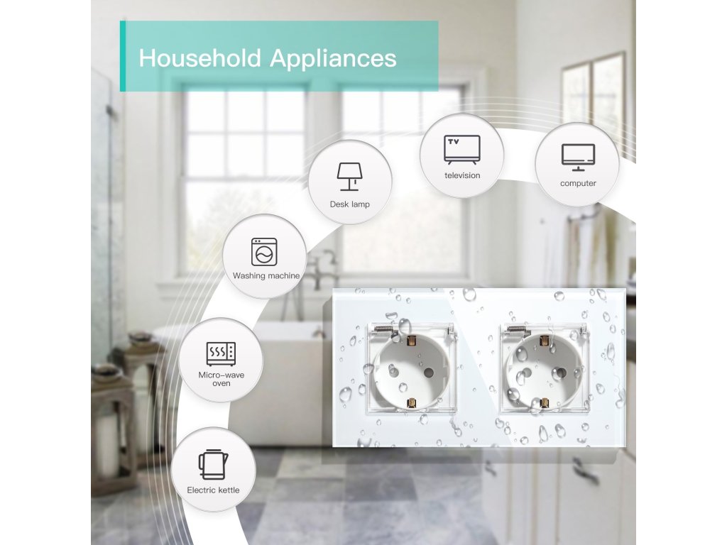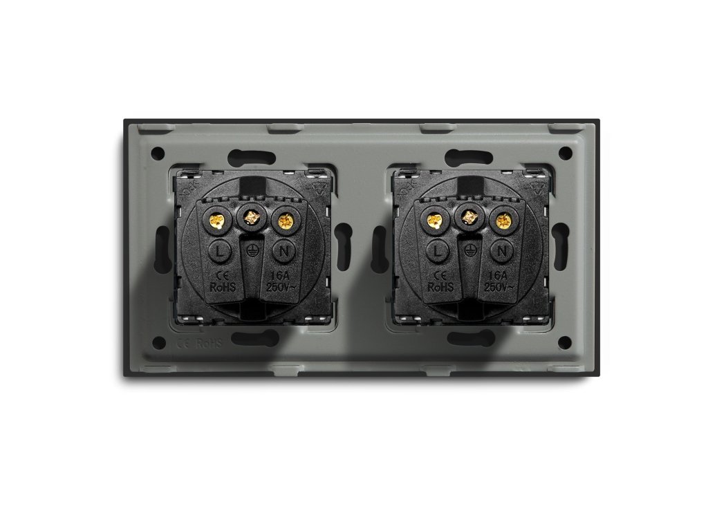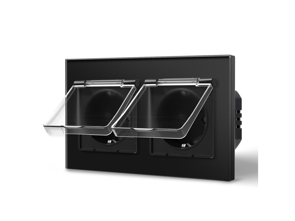 Zásuvky jsou k dispozici ve dvojnásobném, trojnásobném a čtyřnásobném provedení s plastovým průhledným krytem.