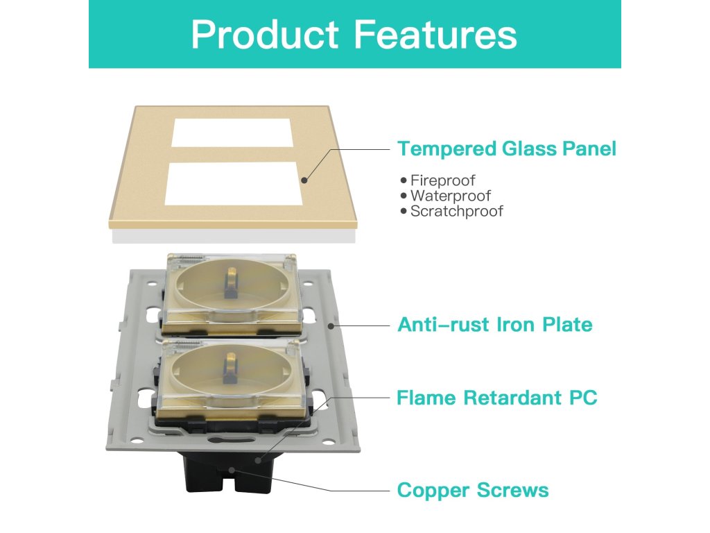 Skleněná panelová zásuvka s ochranným krytem FR Standard.