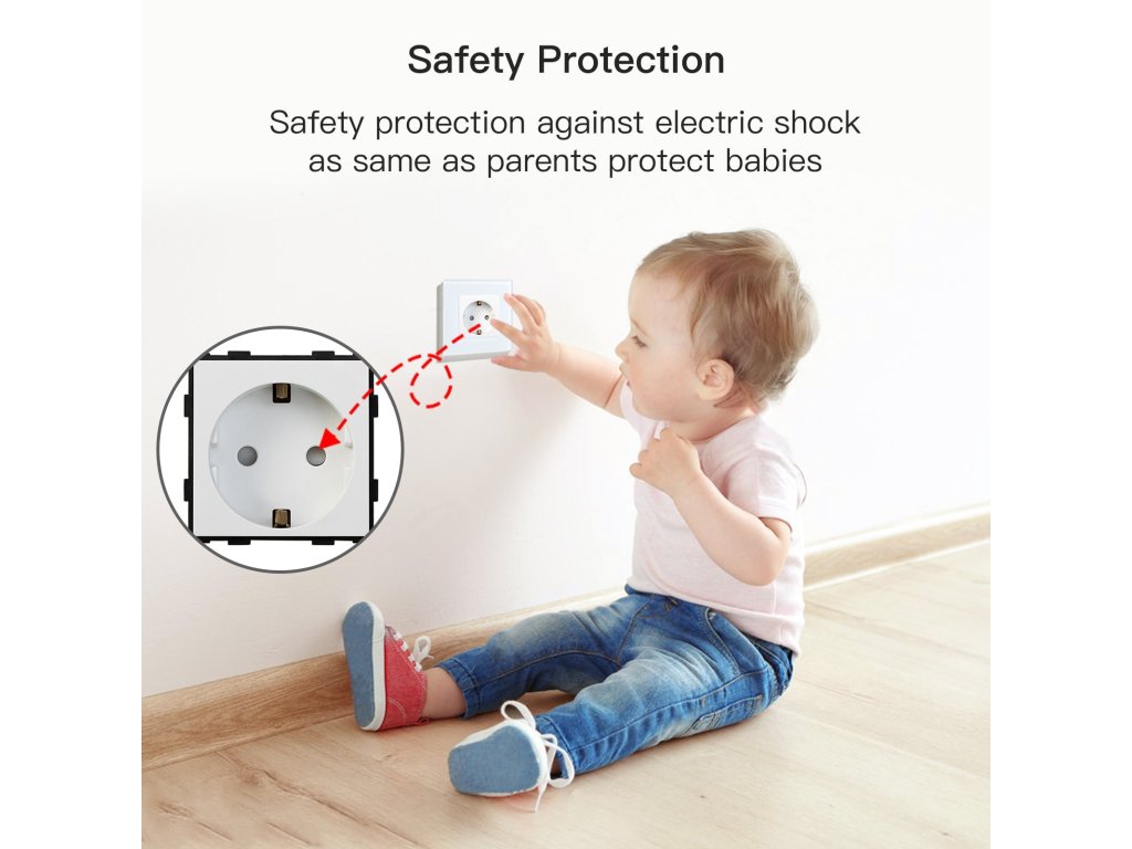 Standardní FR nástěnné zásuvky s dětskou ochranou.