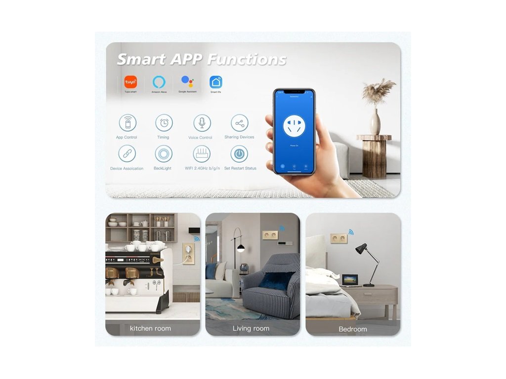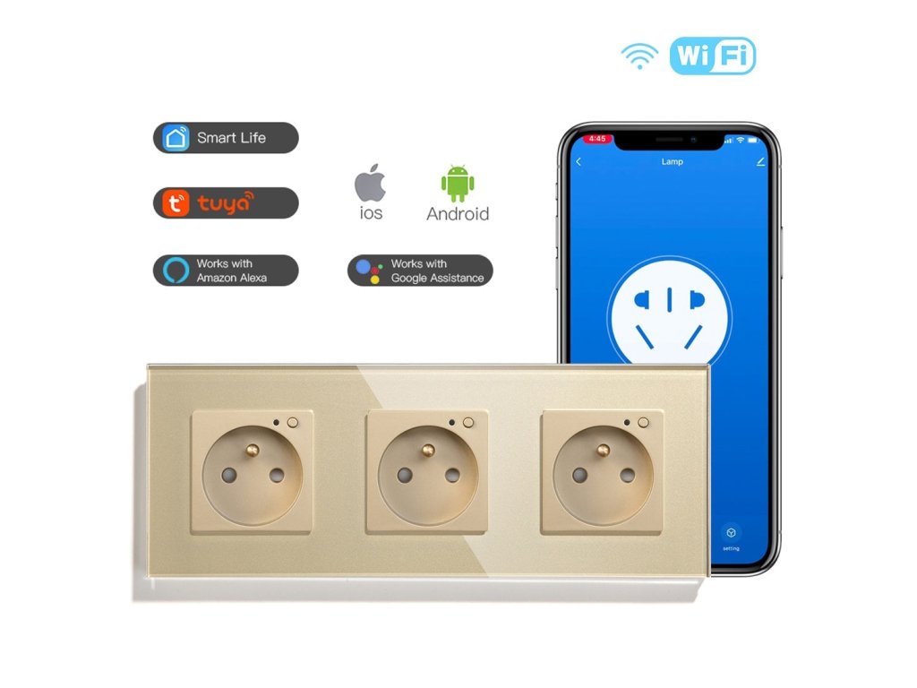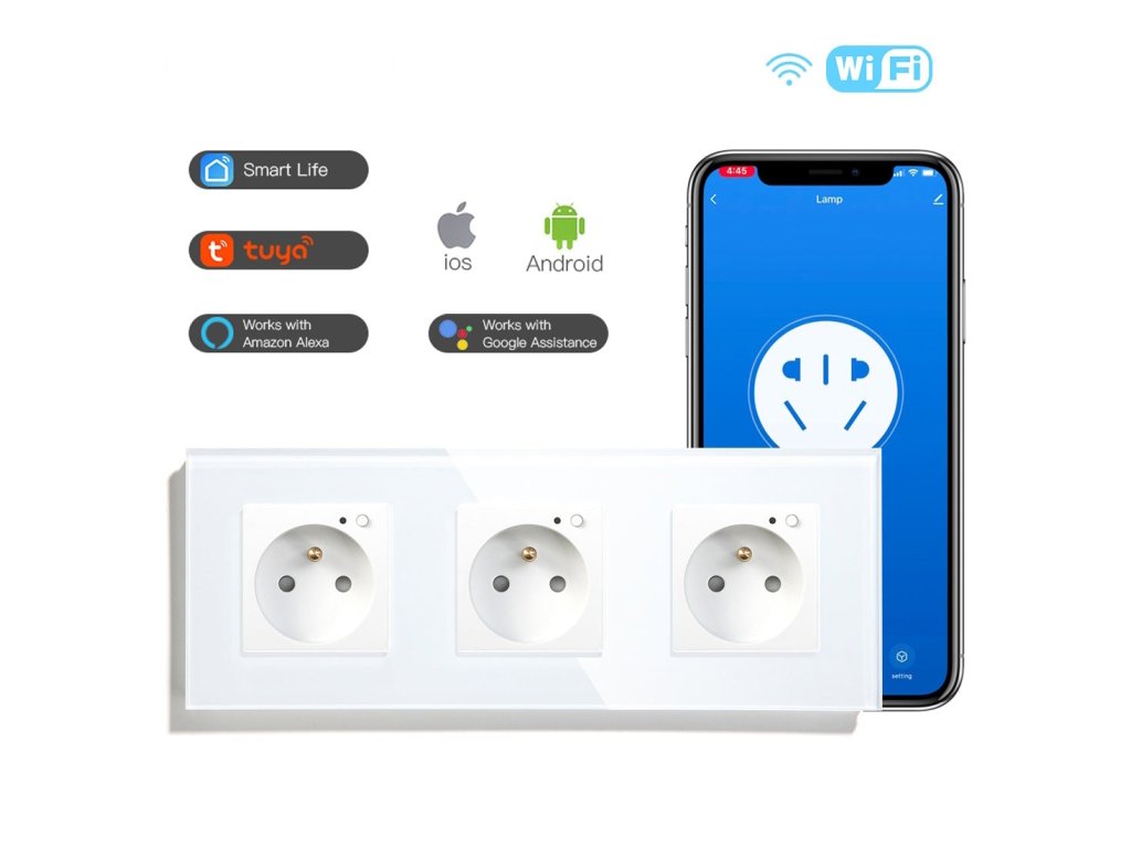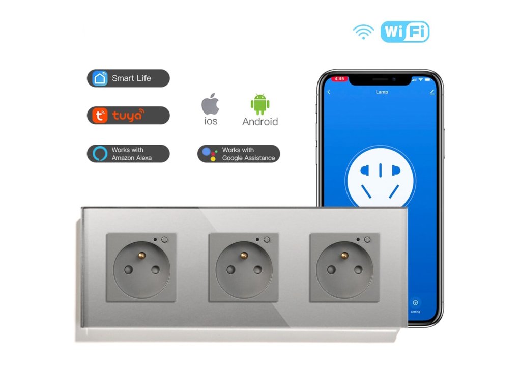 Skleněný panel Wall Smart Socket využívající protokol Tuya pro pohodlné zapínání a vypínání všech vašich domácích spotřebičů.
