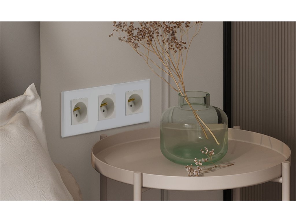 Standardní FR nástěnné zásuvky s dětskou ochranou.